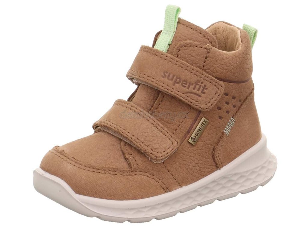 Dětská celoroční obuv Superfit BREEZE Brown/Light Green je ideální kombinací funkčnosti, komfortu a stylu. Díky Gore-Tex membráně je obuv nepromokavá a zároveň dokonale prodyšná, takže dětské nožky zůstanou suché i během deštivých dnů.